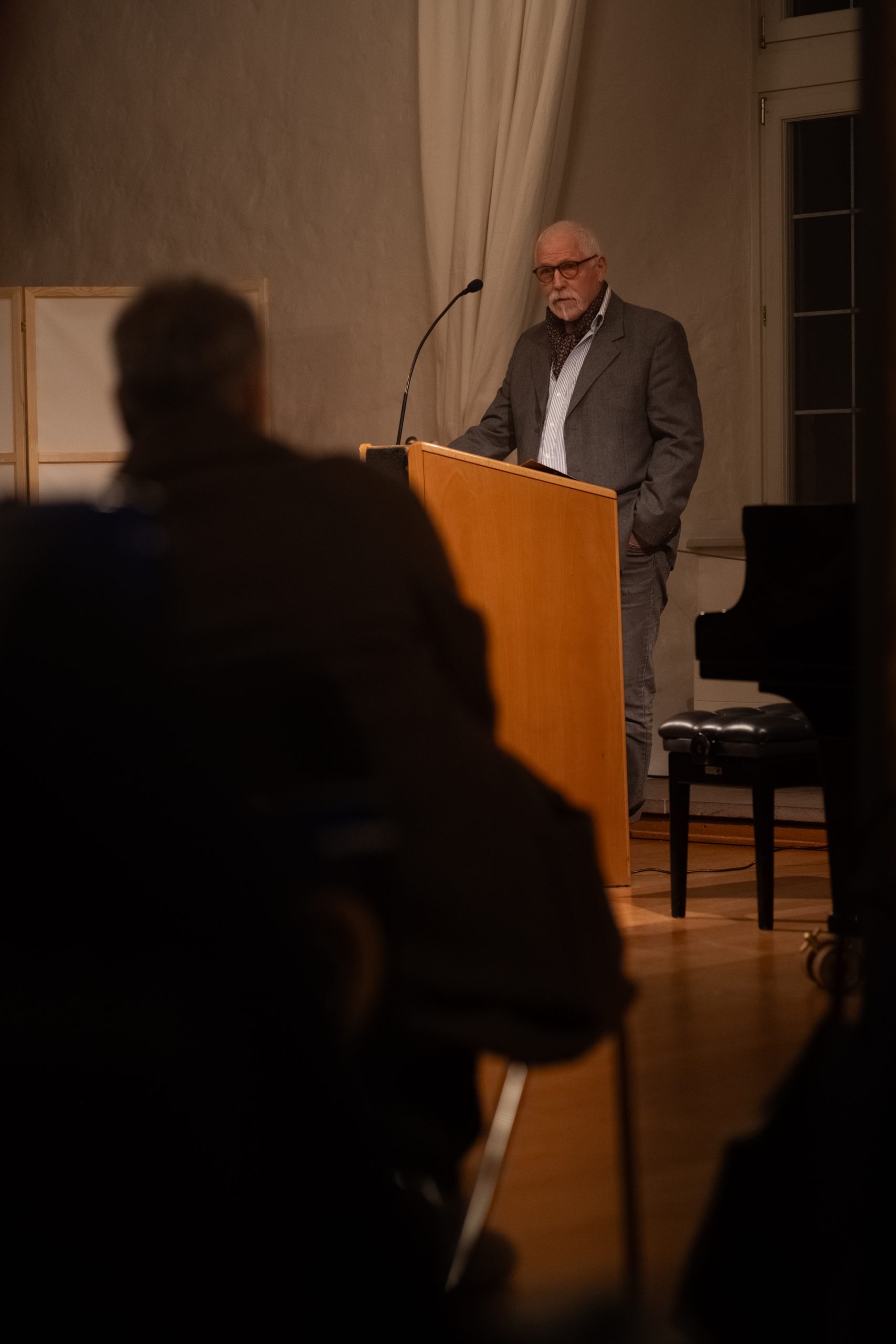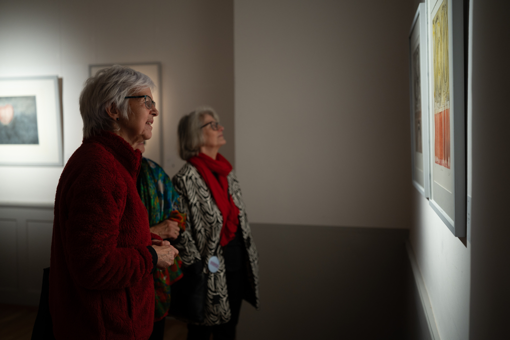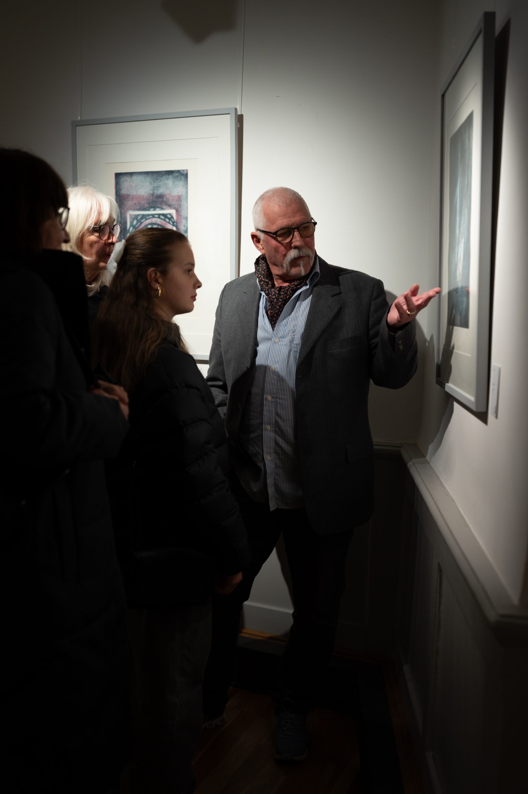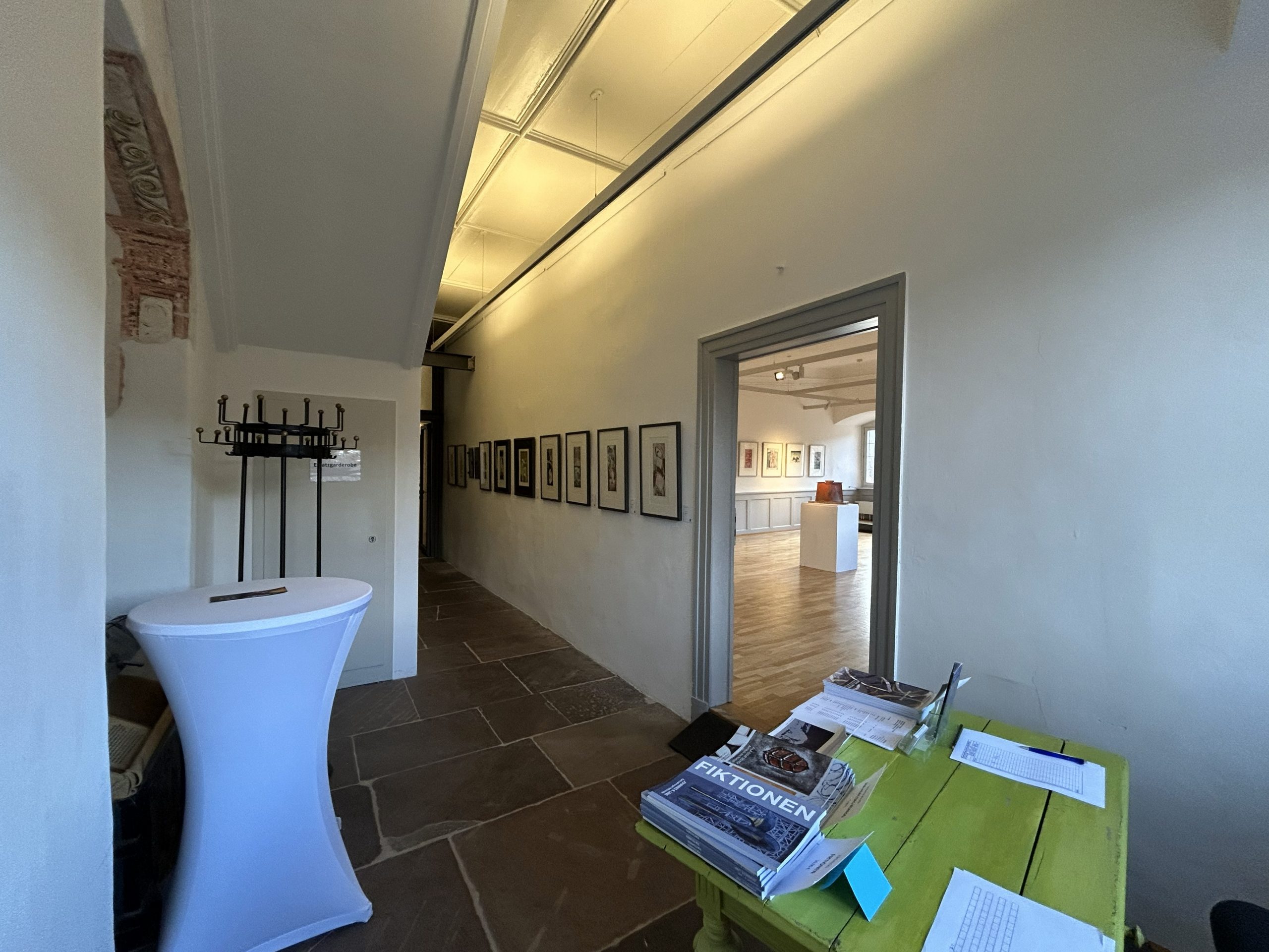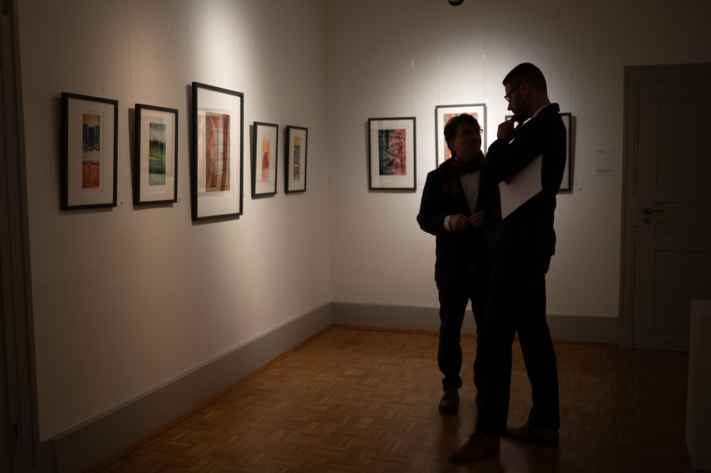 Die Vernissage fand am Abend des 28. November 2025 im Fürstensaal statt und wurde musikalisch eingerahmt von Stücken für Violine und Piano, beeindruckend dargeboten von Yevdokiya Petrenko (Violine) und Christian Knebel (Flügel). Bürgermeister Bader hielt die Begrüßungsrede, und Martin Vester erläuterte Langs Werk ausführlich. Nach der etwa einstündigen feierlichen Eröffnung rief der Künstler alle Anwesenden auf, sich in die Ausstellungsräume in den Südflügel zu begeben, wo sie den Abend vor Langs Werken und bei einem Glas Sekt ausklingen lassen konnten.