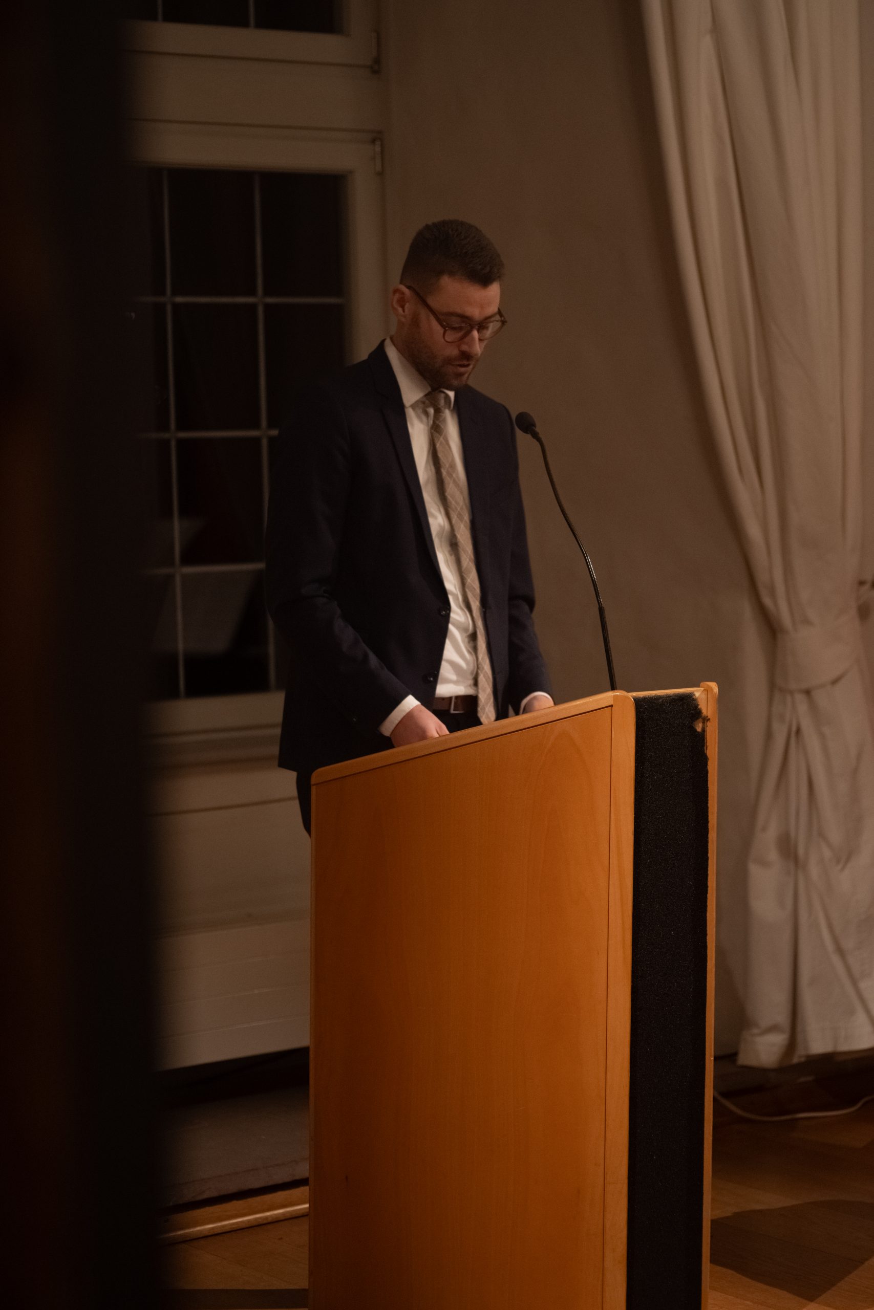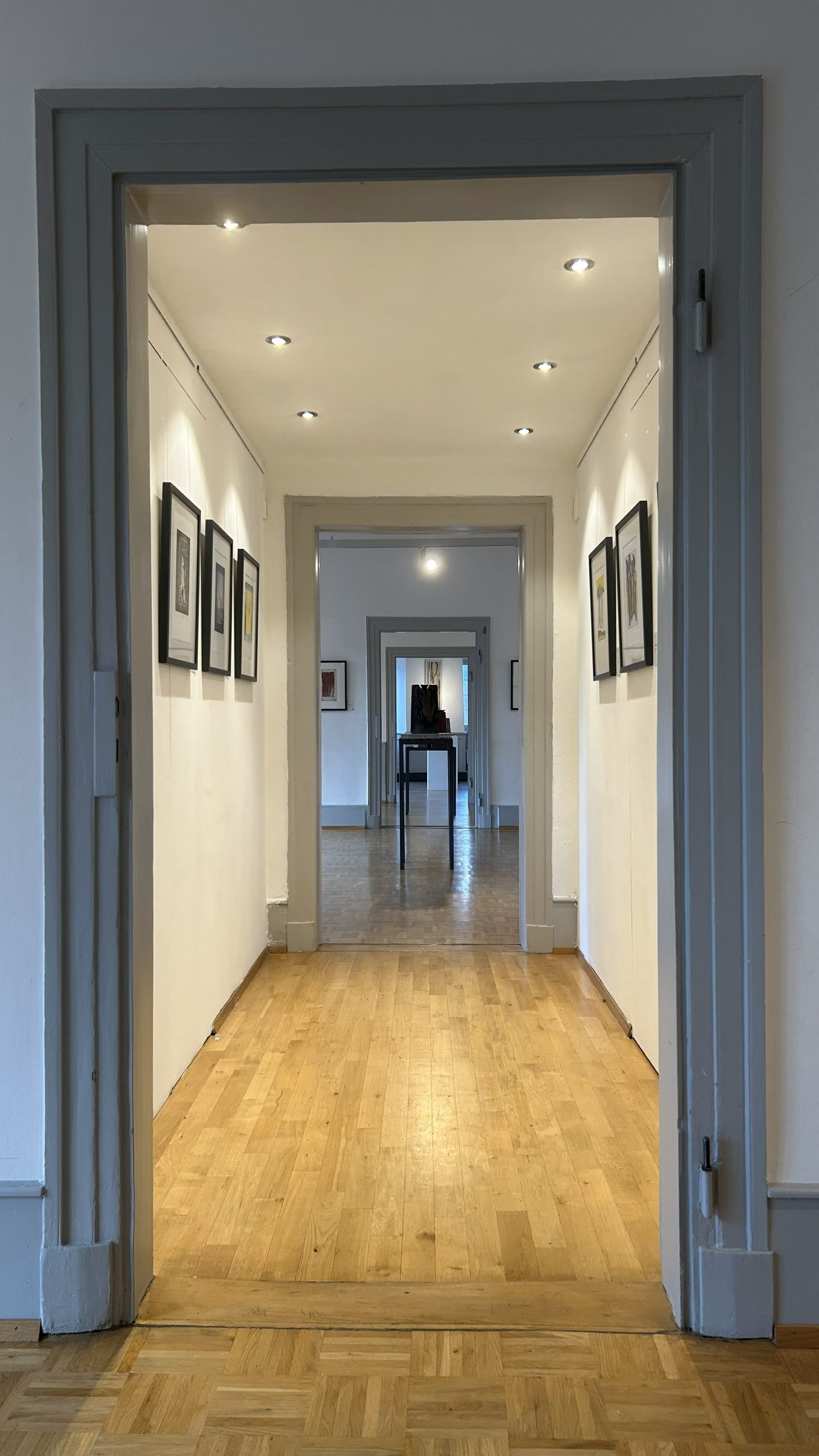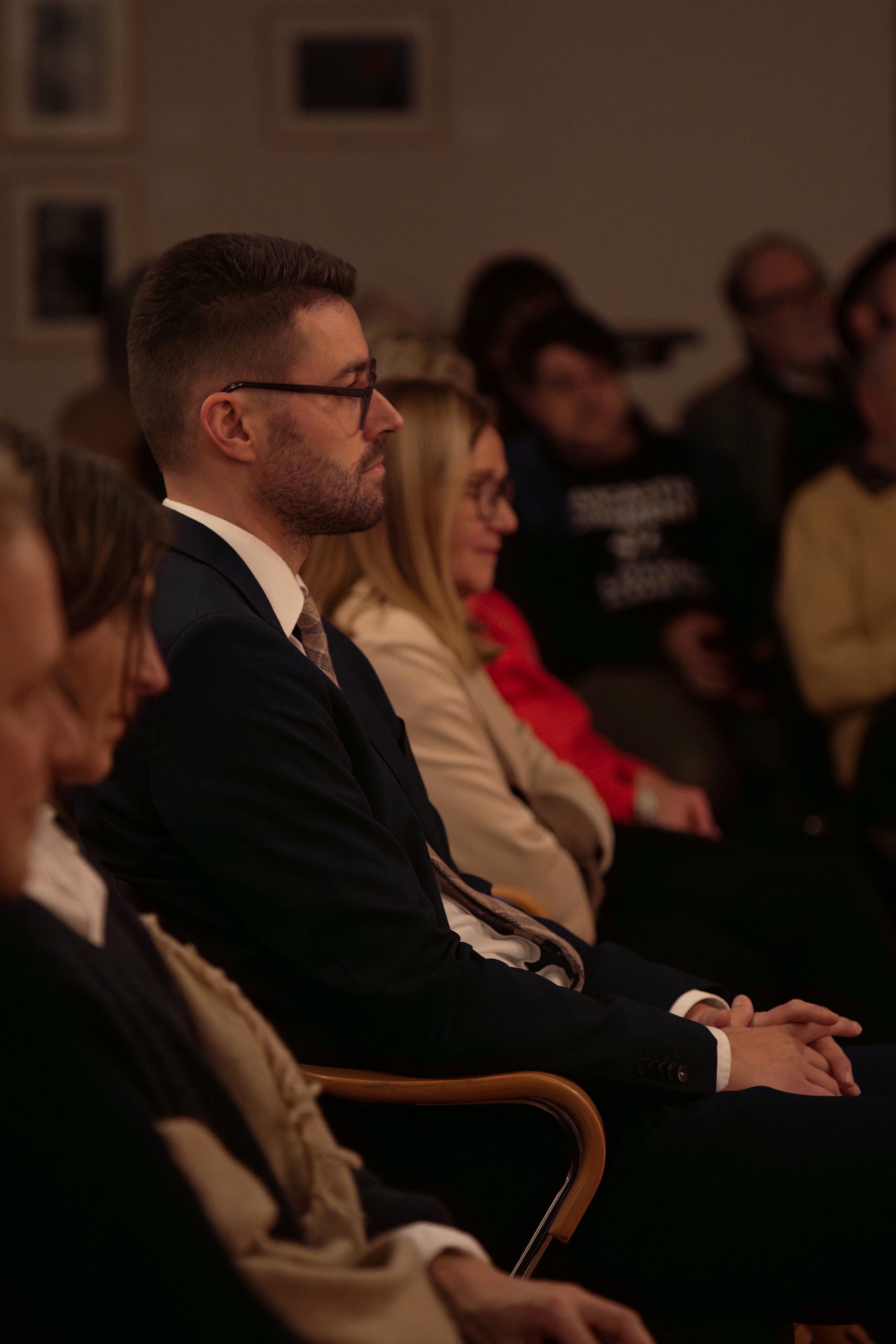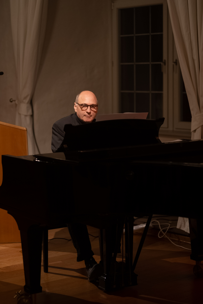 Die Vernissage fand am Abend des 28. November 2025 im Fürstensaal statt und wurde musikalisch eingerahmt von Stücken für Violine und Piano, beeindruckend dargeboten von Yevdokiya Petrenko (Violine) und Christian Knebel (Flügel). Bürgermeister Bader hielt die Begrüßungsrede, und Martin Vester erläuterte Langs Werk ausführlich. Nach der etwa einstündigen feierlichen Eröffnung rief der Künstler alle Anwesenden auf, sich in die Ausstellungsräume in den Südflügel zu begeben, wo sie den Abend vor Langs Werken und bei einem Glas Sekt ausklingen lassen konnten.